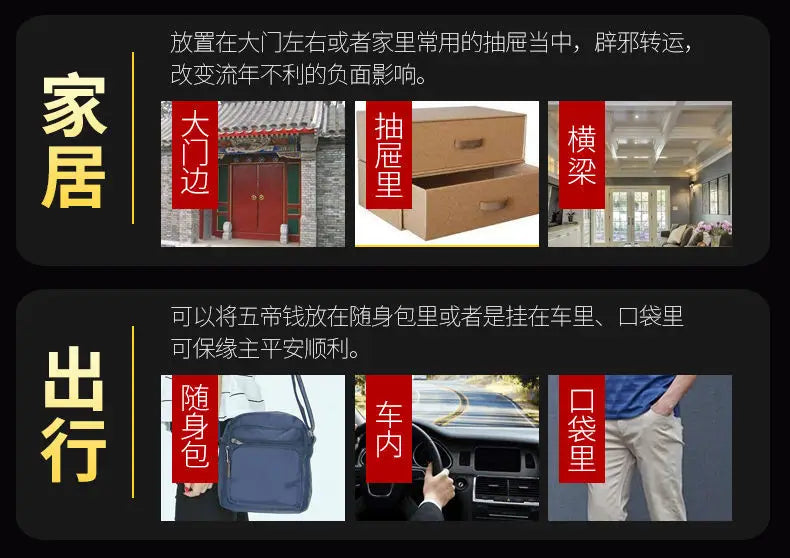 Feng Shui Five Emperors Money Authentic Gourd Pendant Zhaocai Town House Copper Coin Resolve Door-to-door Talisman Amulet