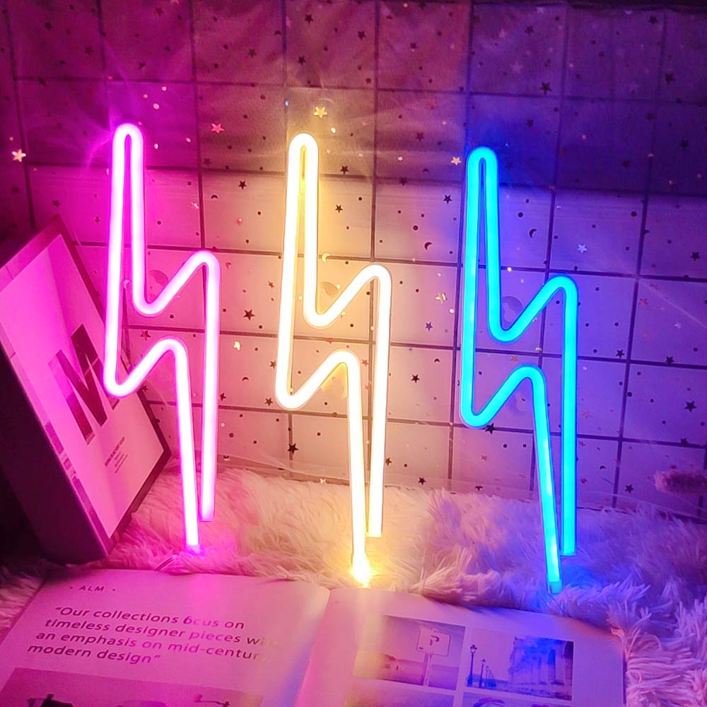 LED Home Neon Lightning Shaped Sign Neon Fulmination Light USB Decorative Light Wall Decor for Kids Baby Room Wedding Party