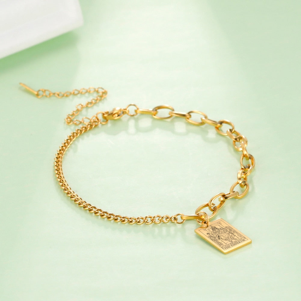 LIKGREAT Mysticism Tarot Card Charm Bracelet for Men Women Stainless Steel Good Luck Tarot Jewelry Esotericism Christmas Present