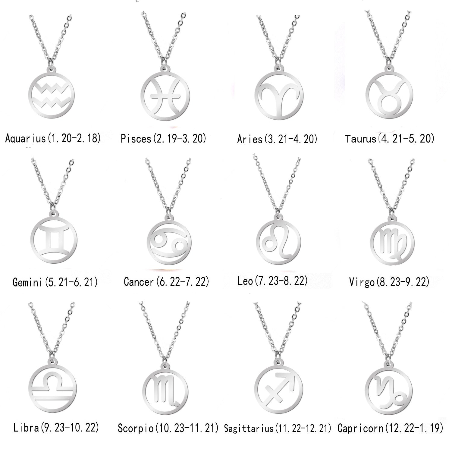 Skyrim Zodiac Libra Leo Pendant Necklace Women Sagittarius Taurus Cancer Virgo Stainless Steel 12 Constellation Necklaces Gift