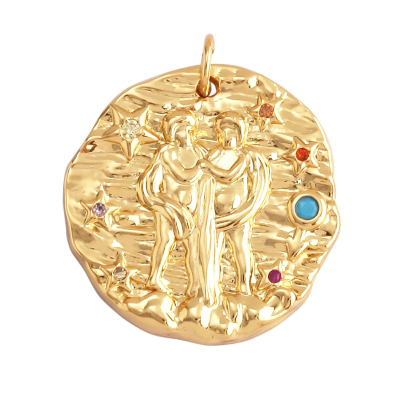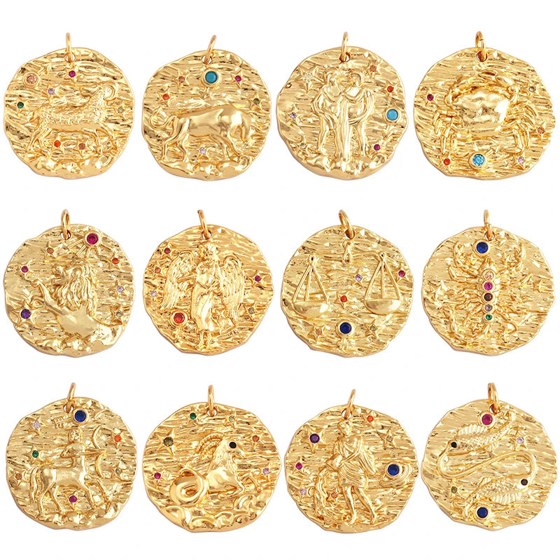 Trendy Zodiac Horoscope Sign Medallion Charm Pendant,Round Coin Gold Plated Sparkle Necklace Bracelet Jewelry Making Supply L92