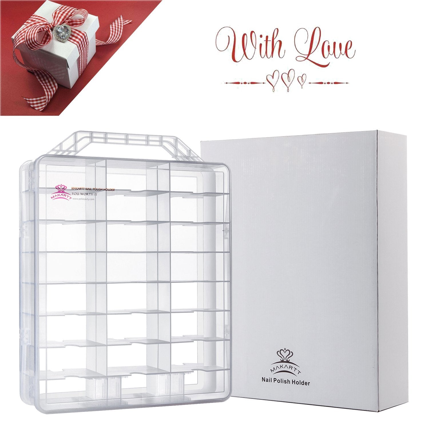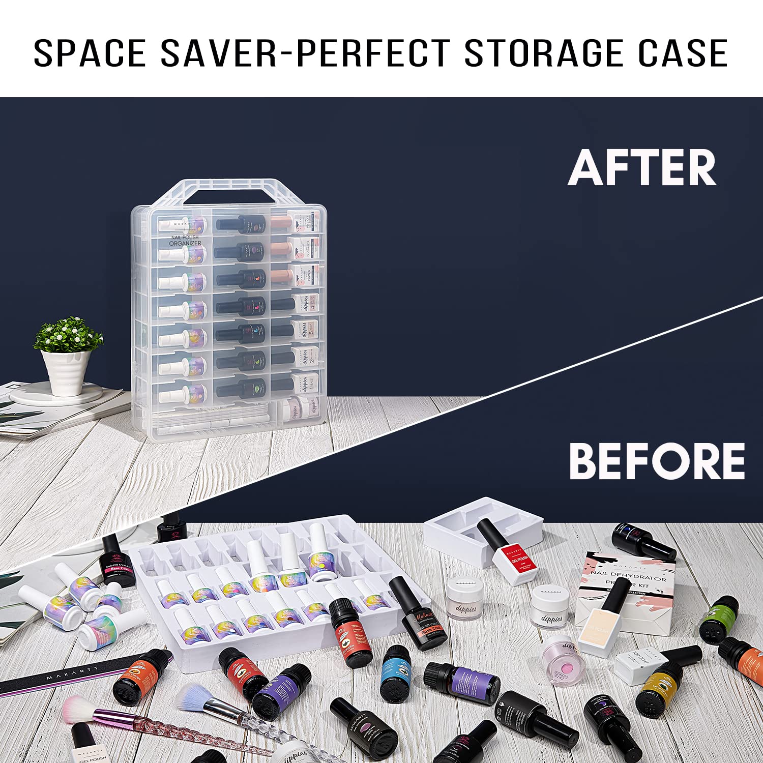 Universal Clear Nail Polish Organizer Holder for 48 Bottles with Adjustable Compartments Portable MAKARTT Nail Polish Case