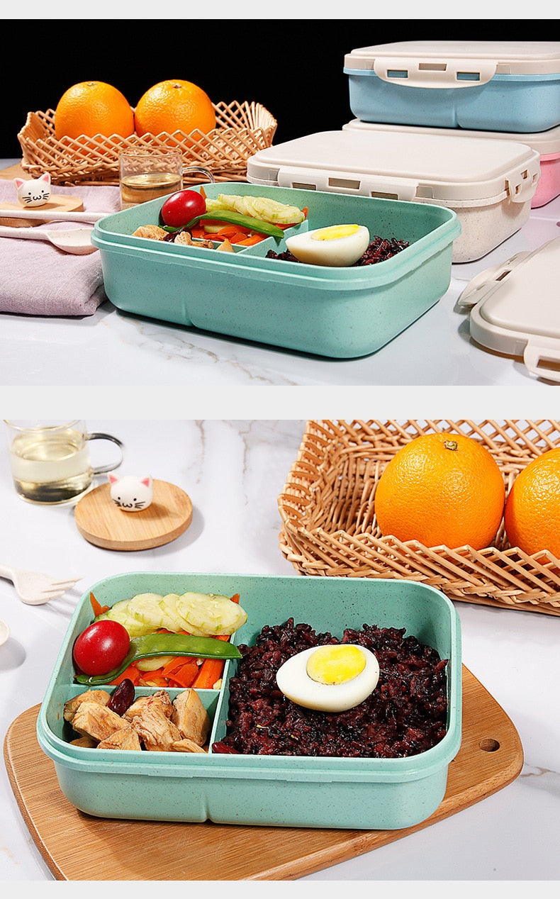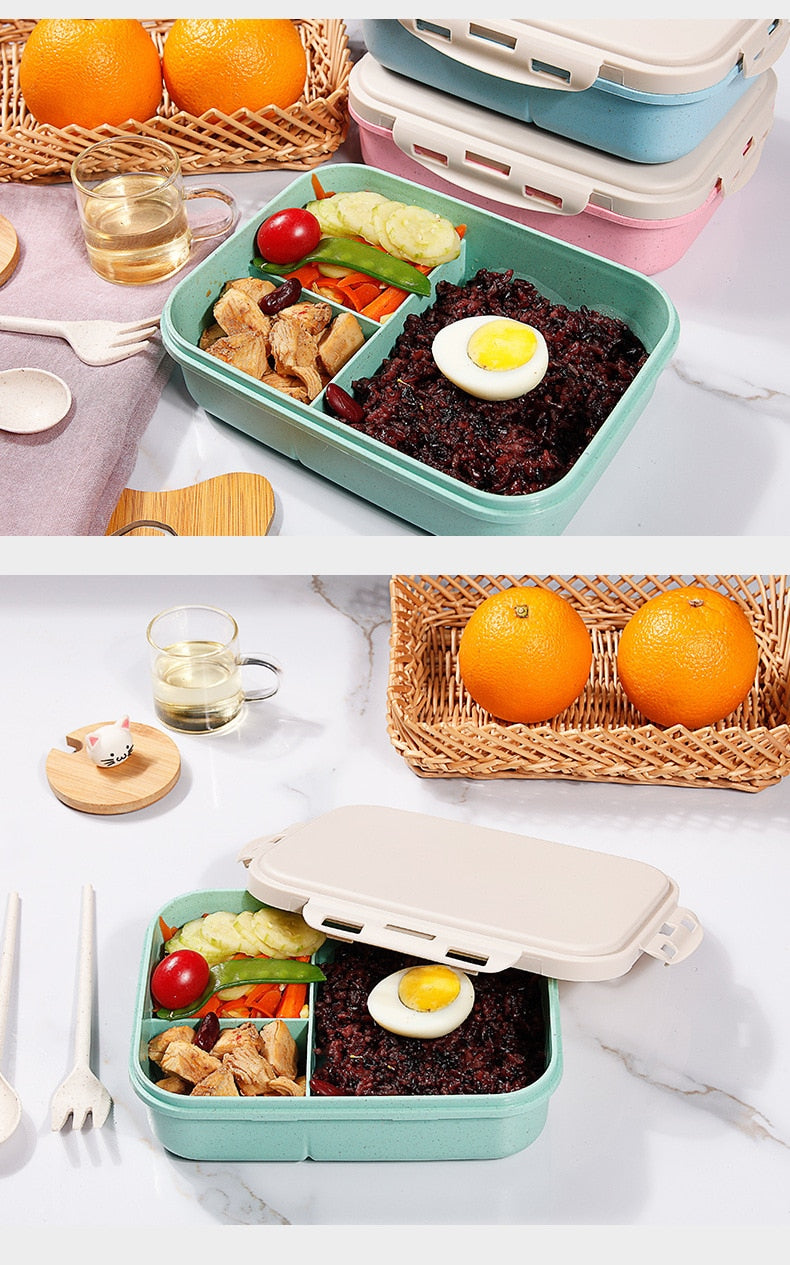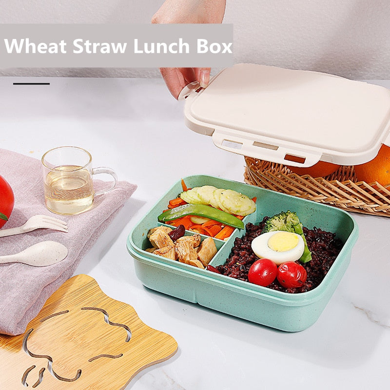 Wheat Straw Lunch Box Microwavable Tableware Students Adult Multi Grids Lunch Boxes Insulation Keep Fresh Leakproof Storage Box