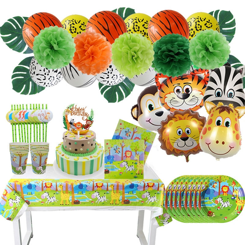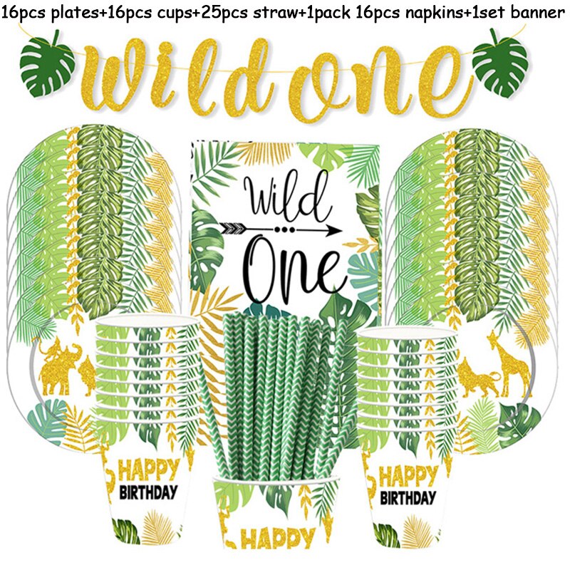 Wild One Birthday Party Decor Animal Tableware Set Balloon Arch Garland Safari Jungle Decoration Baby Shower 1st Birthday Boy