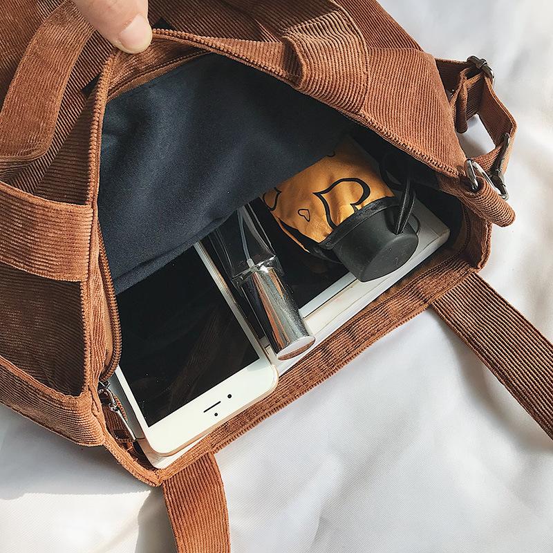 Women Corduroy Shoulder Bags Striped Cloth Fabric Handbags Casual Zip Tote Canvas Crossbody Bag Cute Shopping Bag For Ladies