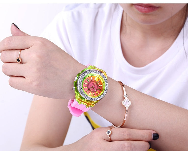Women Flash Luminous Personalized Rhinestone Led Watch Trends Students Lovers Jellies Woman Men's Watches Light Wrist Watch