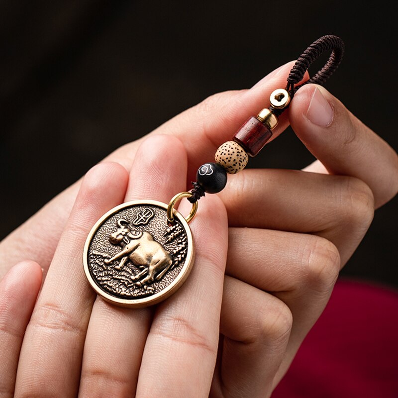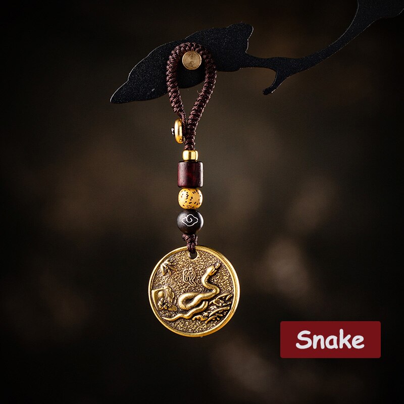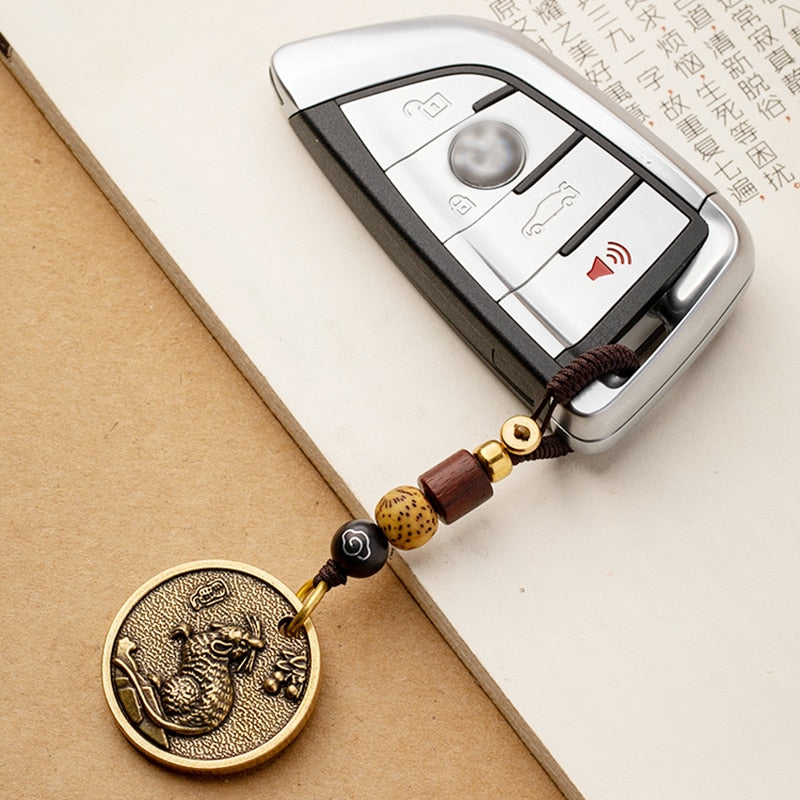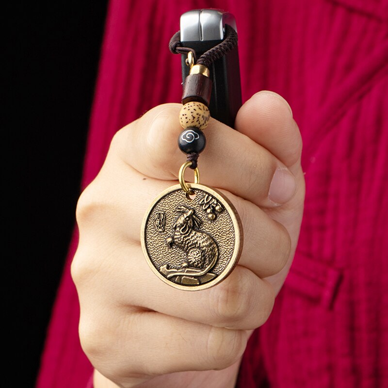 Zodiac Animal Tag Car Keychain Lanyard Pendants Brass Rat Bull Tiger Rabbit Dragon Snake Horse Monkey Dog Handmade Rope Hangings