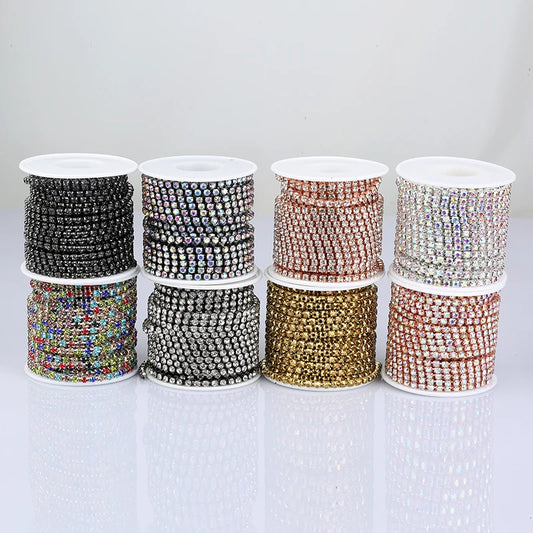 1Yard 10Yards/roll SS6-SS16 Crystal AB Claw Rhinestone Glass Sewn On Rhinestones Chain for Needlework Fabric Sewing Trimmings