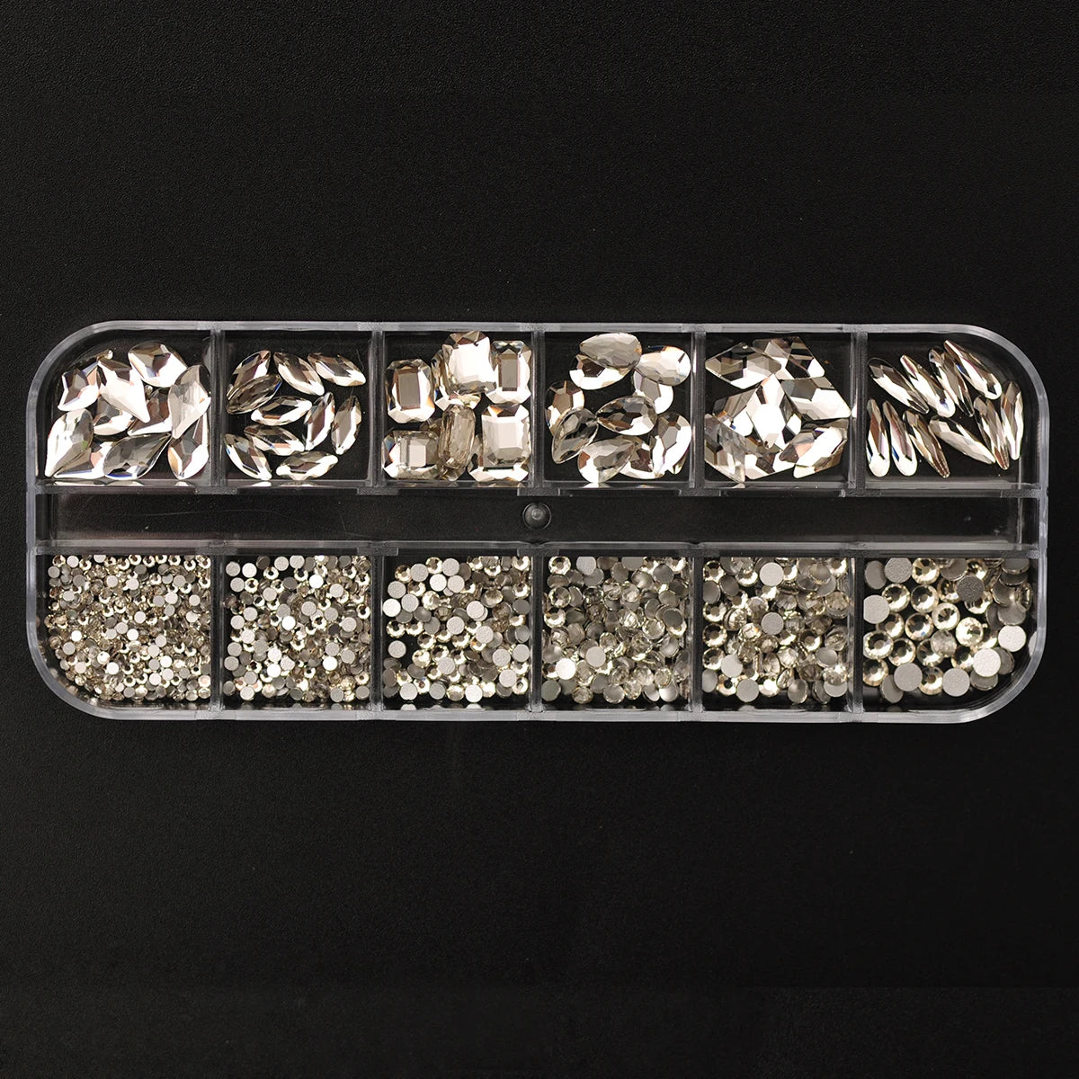 12 Grids Clear Mixed Sizes Nail Art Rhinestones Crystal 3D Glitter Non Hotfix Diamond Decoration Nail Parts Accessories