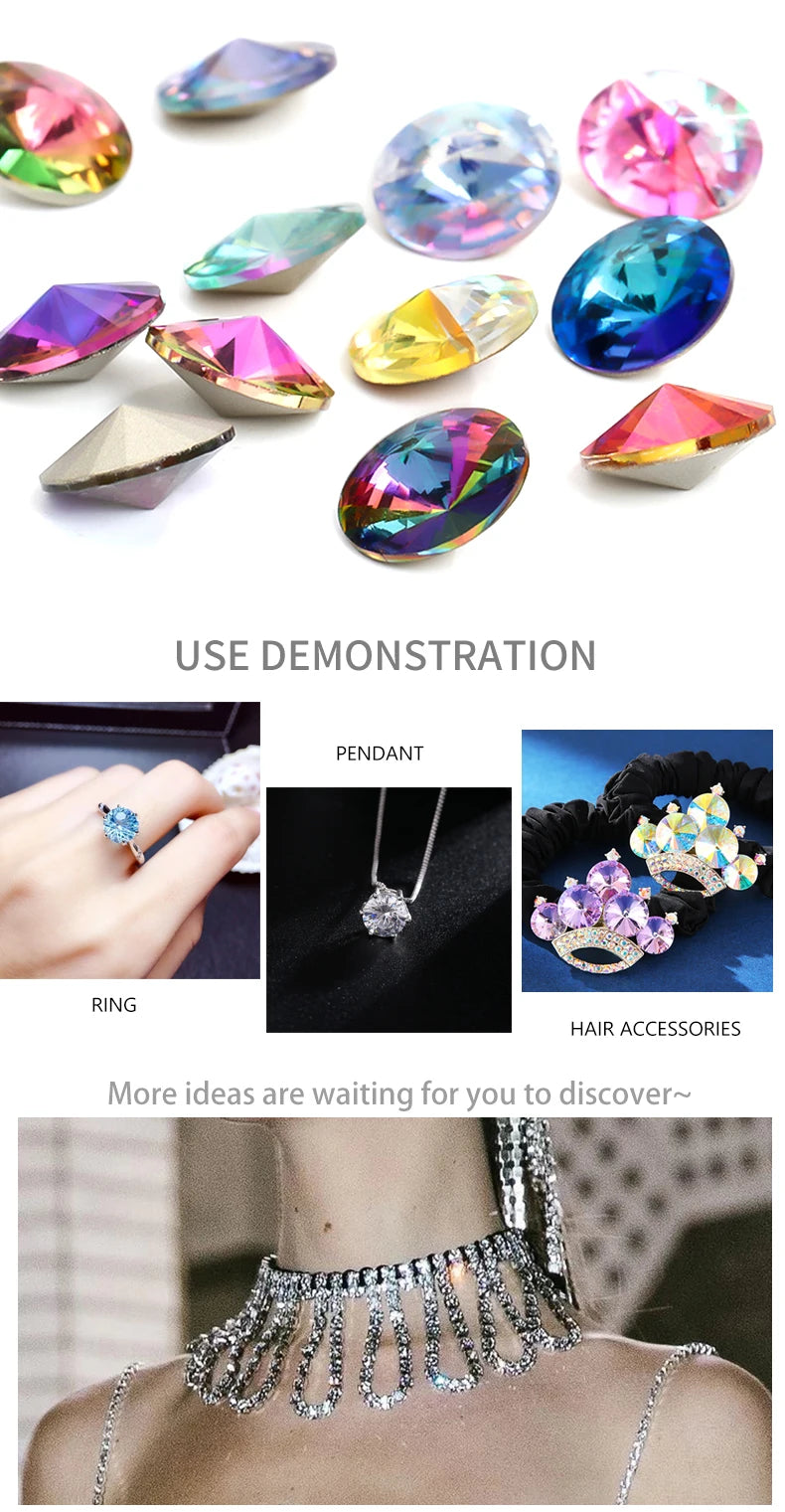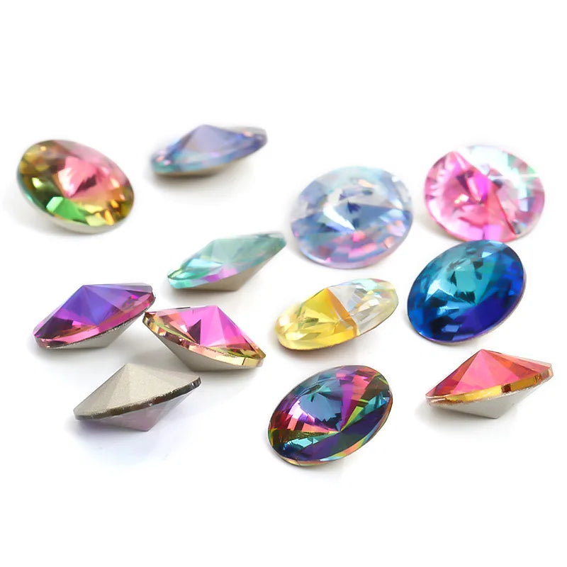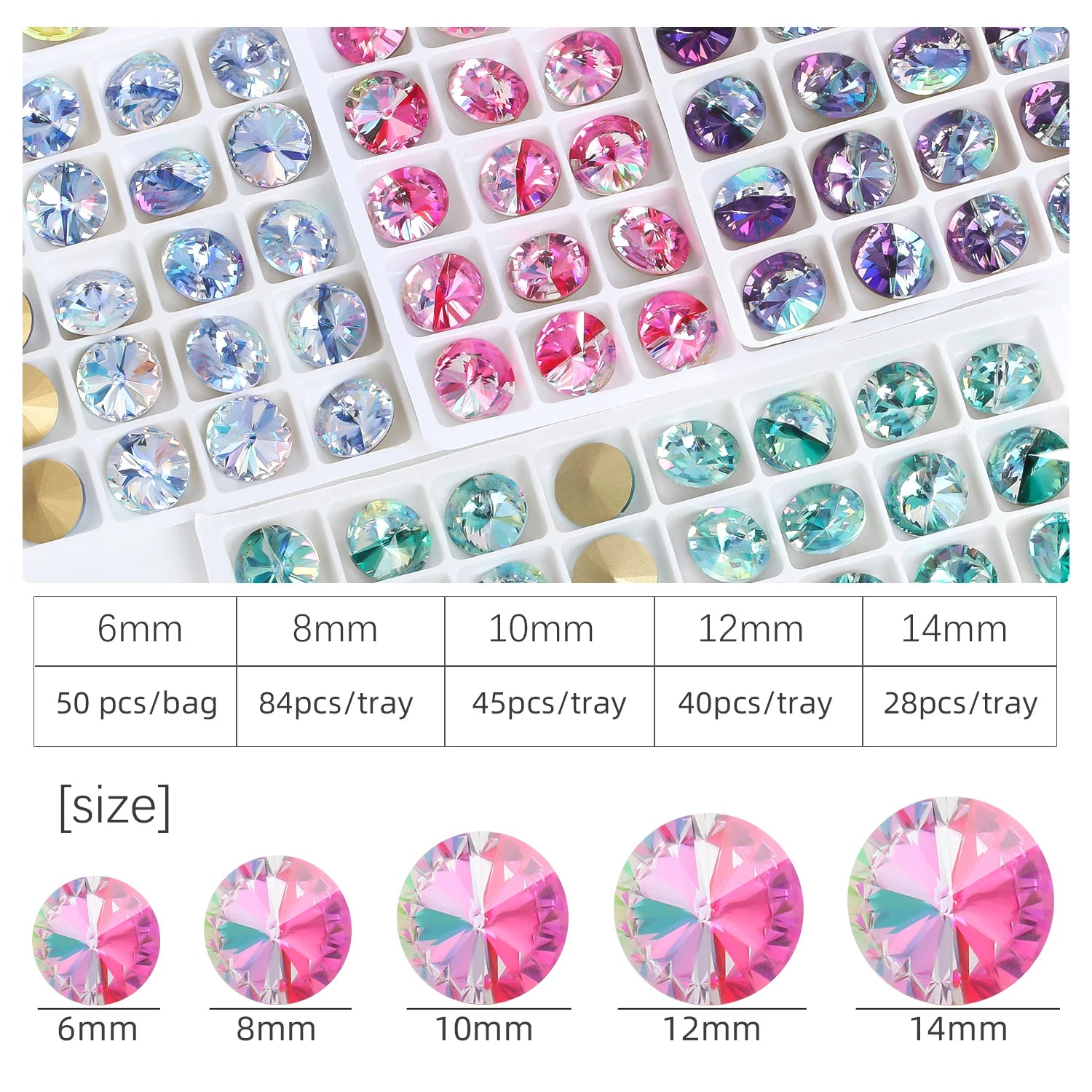 6/8/10/12/14MM Rivoli Rhinestone Round Pointed Diamond Stones Colorful Beads Crafts Crystal Nail Clothes Jewelry Accessories