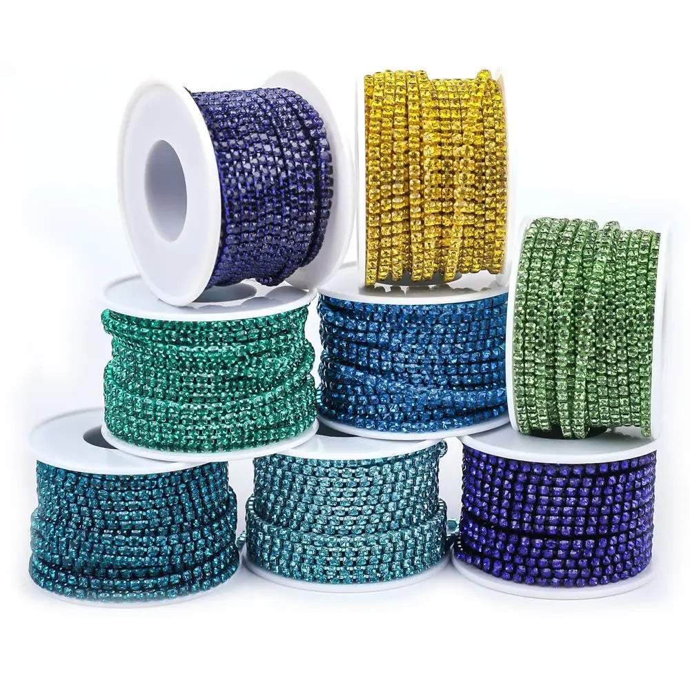 Crystal 10 Yard Rhinestones Trim Stone Cup Chain Gold Diamond Strass Decorative Applique Crystal Trimmings For Dresses