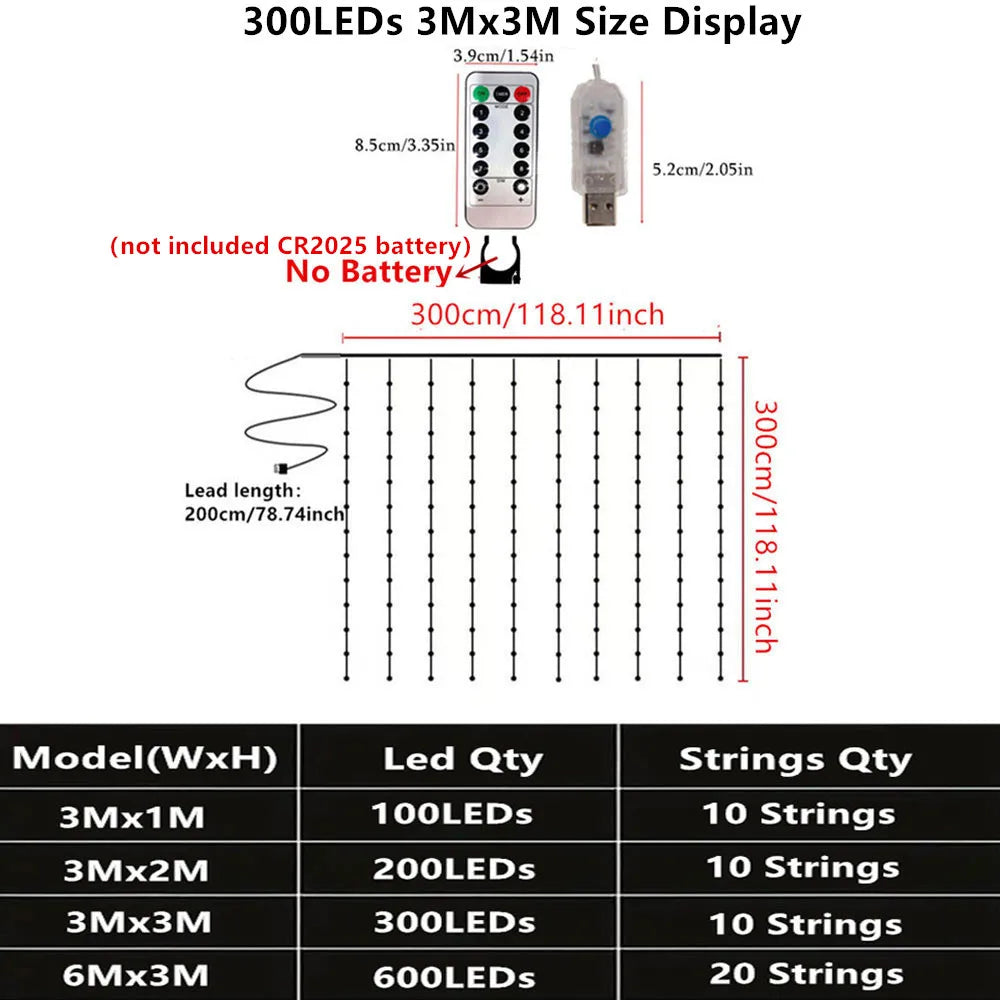 LED Curtain Lights USB Powered with Remote Control Holiday Christmas Decorations for Home Wedding Birthday Bedroom Party Lights
