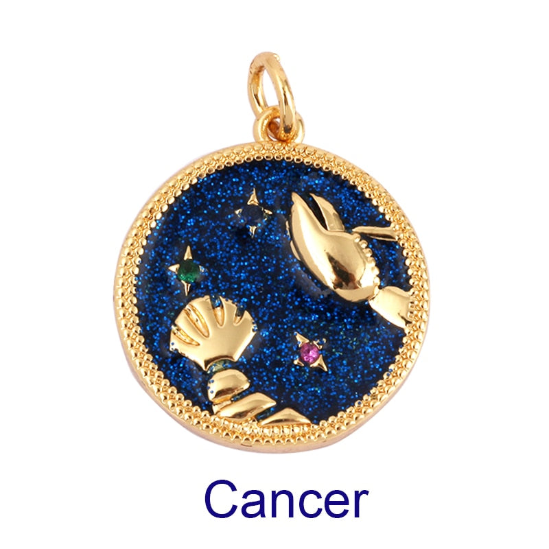 Mặt dây chuyền cung Hoàng đạo mạ vàng 18K thật, hình xu Astro lấp lánh để làm vòng cổ, vòng tay, trang sức