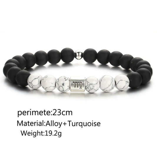 12 Zodiac Sign Homme Constellation Bangles Men Cancer Virgo Leo Natural Stone Handmade Card Bracelet Women Friendship Jewelry