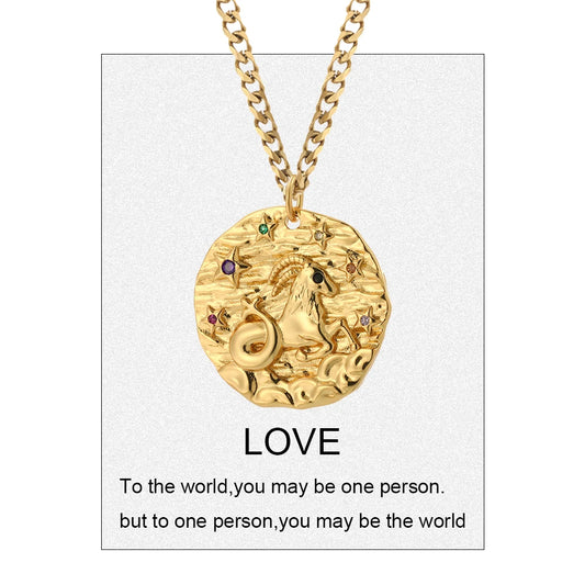 12 Zodiac Constellation Necklace for Women Gold Color Amulet Vintage Coin Woman's Pendant Copper Pave CZ Trendy Punk Collars