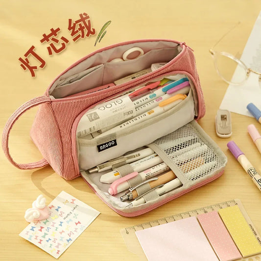 Corduroy Cute Pencil Case Macaron Colors Pencilcase Pencil Bags Make Up Pen Storage Bag School Supplies for Girls Stationery
